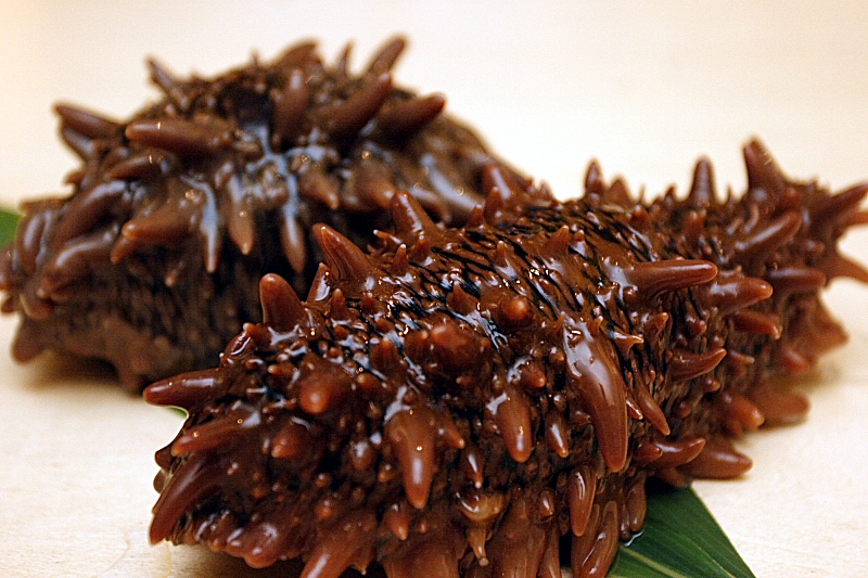 またつでは、なまこを生きたままスライスして提供する。コリコリの食感と磯の香りを楽しんでもらう為だが、歯の悪い人には噛み切れないかもしれない・・・。